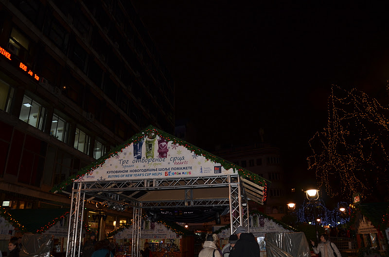 The December night. Waiting on a friend.How nice is, for a change, when someone else is late (and not me, LOL). We were born the same day so I can completely understand her.🙂 Should we go for cup of coffee or hot chocolate? I would like something to eat. But it is too late, and hot chocolate is enough. How cute is Square of open hearts here in Belgrade! So many nice details. I love the holidays!