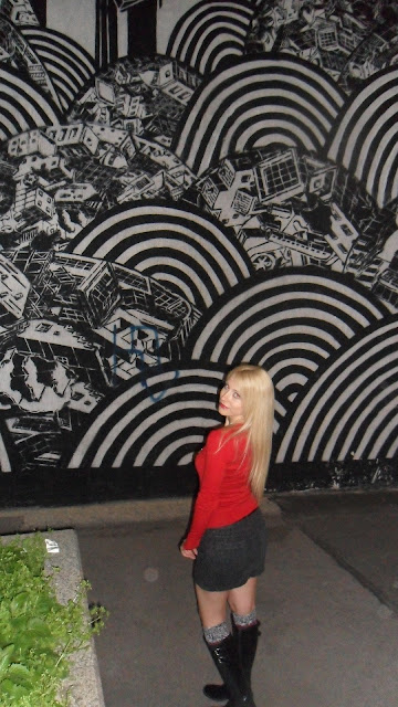 Ovaj mural je genijalan! odicne su mi cizme , super idu uz suknjicu…obozavam to! :*